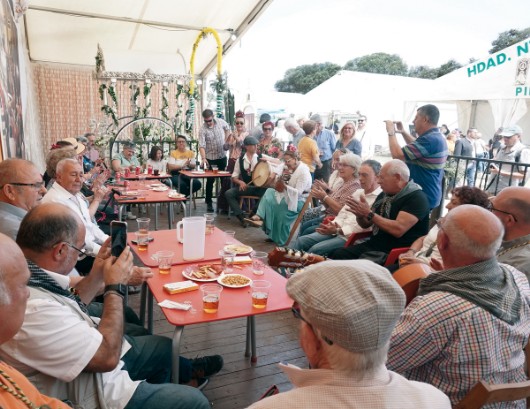 Fotografía 1. Un momento de convivencia y celebración en la casa de hermandad en el Rocío 2023, justo después de la Misa de Romeros.