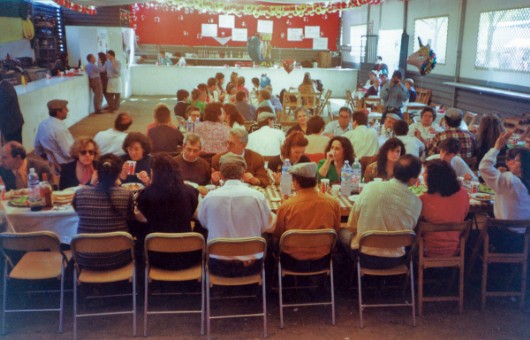Fotografia 2. Dinar de germanor a la caseta de l’Hermandad Nuestra Señora del Rocío Los Romeros de la Fira del 1992.