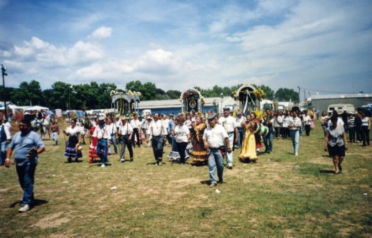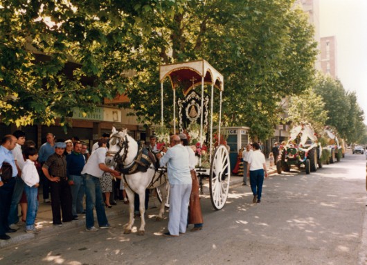 el seu primer romiatge, el 1986, el Simpecado va peregrinar en una carreta